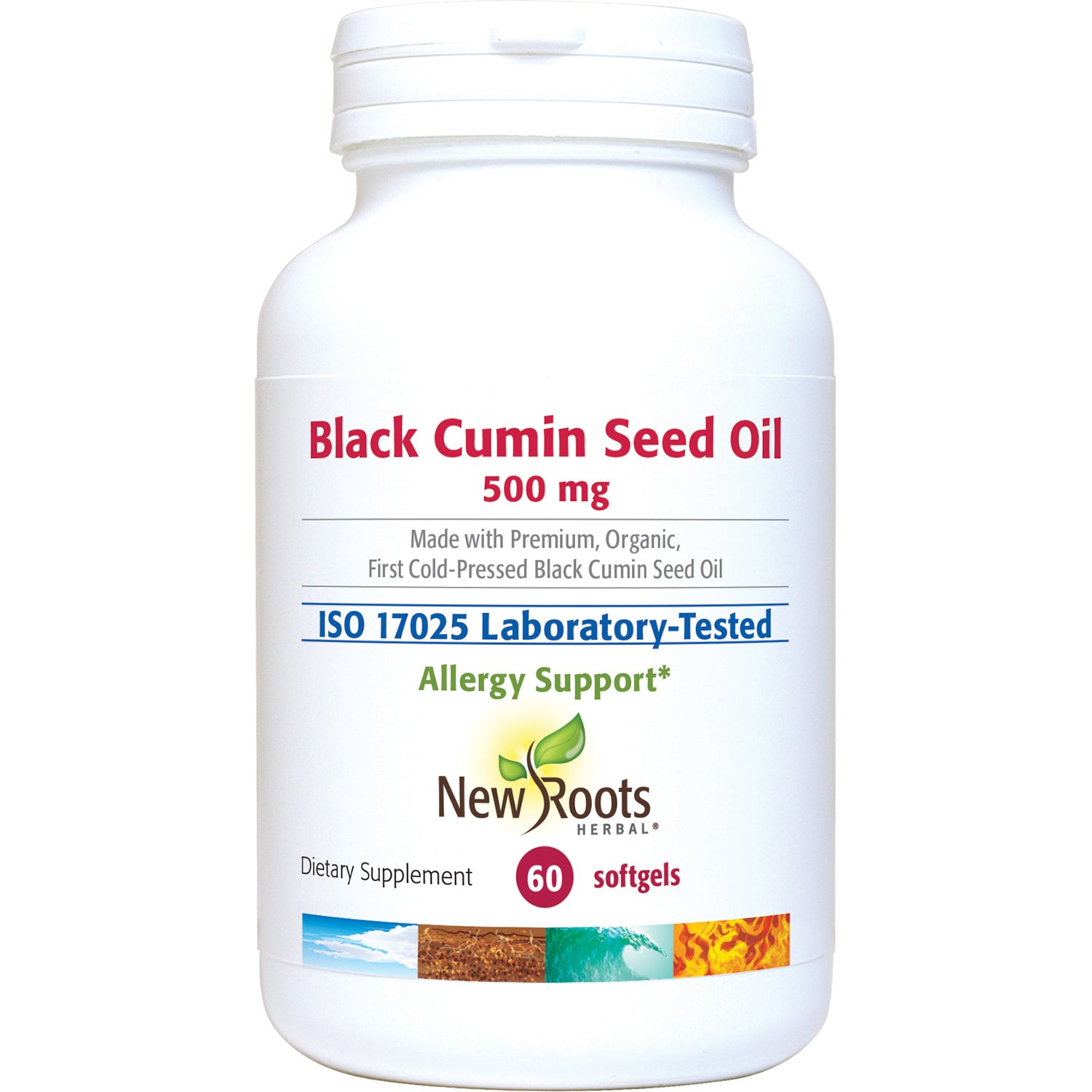 New Roots Herbal cold-pressed black seed oil softgels sourced from the wonderful plant nigella sativa, captures it all in a 500mg capsule along with natural vitamin E. The result is a superior-quality black cumin seed oil supplement that conveys all the benefits in an easy-to-swallow softgel. The chemical compounds thymoquinone (TQ), thymohydroquinone (THQ) and thymol are most effective when working together, and are naturally occurring in nigella sativa. On the outside, the combined antioxidant properties of Black Seed and vitamin E promote stronger hair roots and increased melanin production which helps maintain healthy skin. We manufacture these vegetarian, non-GMO softgels in an ISO 1725 accredited laboratory for the best quality.
