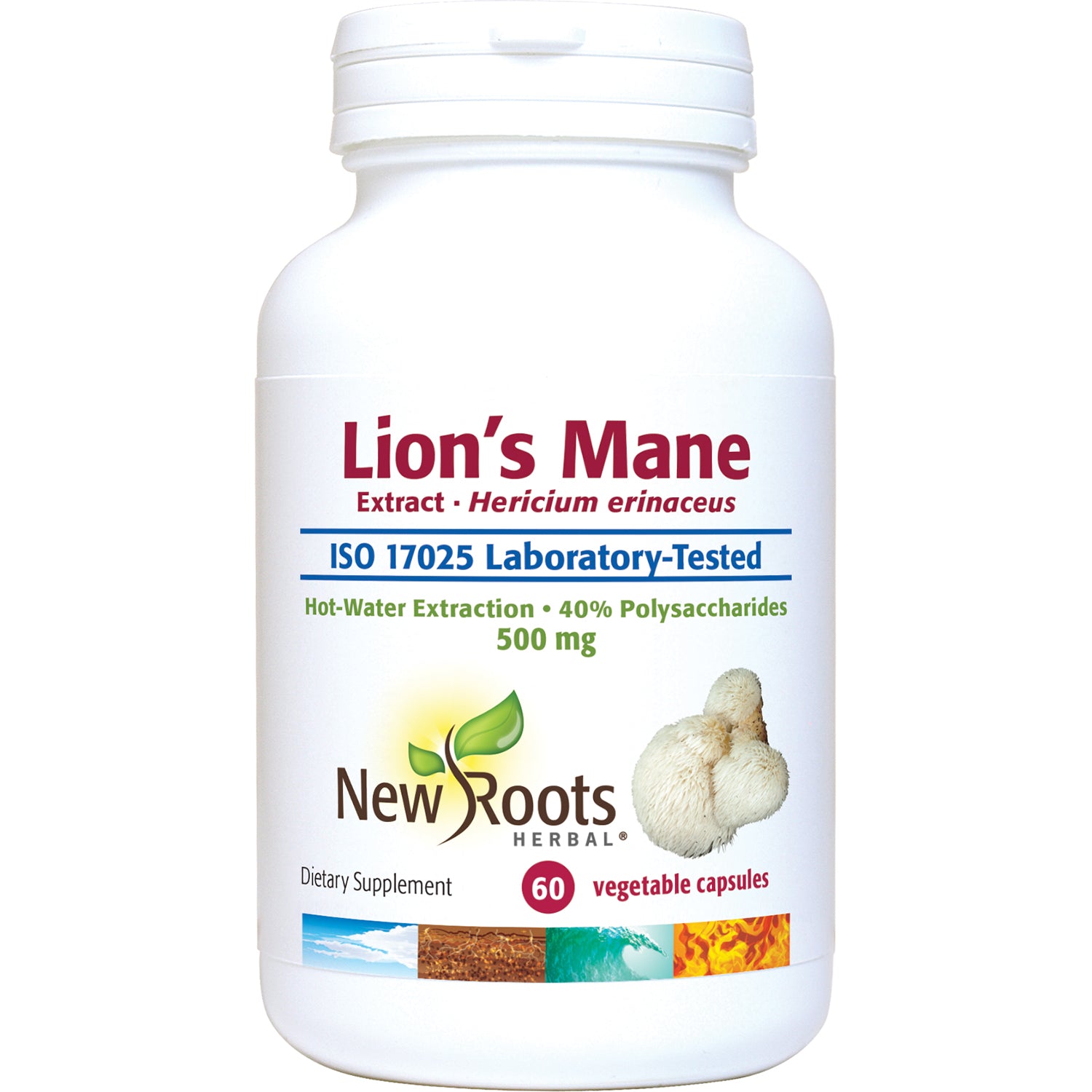 Lion’s mane is a magnificent member of the mushroom kingdom that’s found in North America as well as Europe and Asia. Our lion’s mane is cultivated in shade-free, climate-controlled greenhouses, reducing strain on the natural supply of this medicinal mushroom as commercial demand grows. Lion’s mane (Hericium erinaceus) extract (40% polysaccharides, providing 35% beta-glucans) is a rich source of beta-glucans, polysaccharides that stimulate immune functions. New Roots Herbal’s Lion’s Mane (Hericium erinaceus) is a hot water–extracted medicinal mushroom formula standardized to contain 40% polysaccharides (200 mg per capsule). Hot-water extraction is critical in obtaining a high-quality and effective mushroom product, and is the traditional Asian method of extraction. Standardization ensures that the final product contains a consistent amount of polysaccharides to allow delivery of a therapeutic dose.