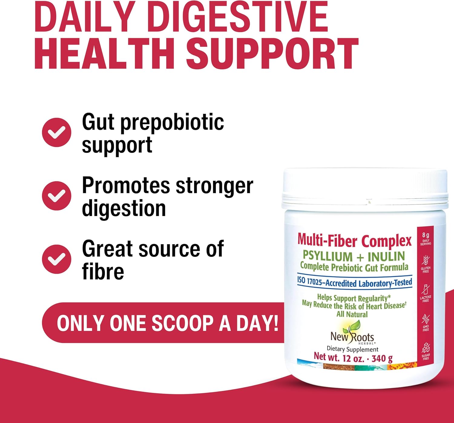 New Roots Herbal Multi-Fiber Complex Powder - Unflavored 350g [12 oz] | Psyllium Husk & Inulin Chicory Root Prebiotic | Soluble and Insoluble Fiber Supplements Powder for Womens Mens Digestive Health