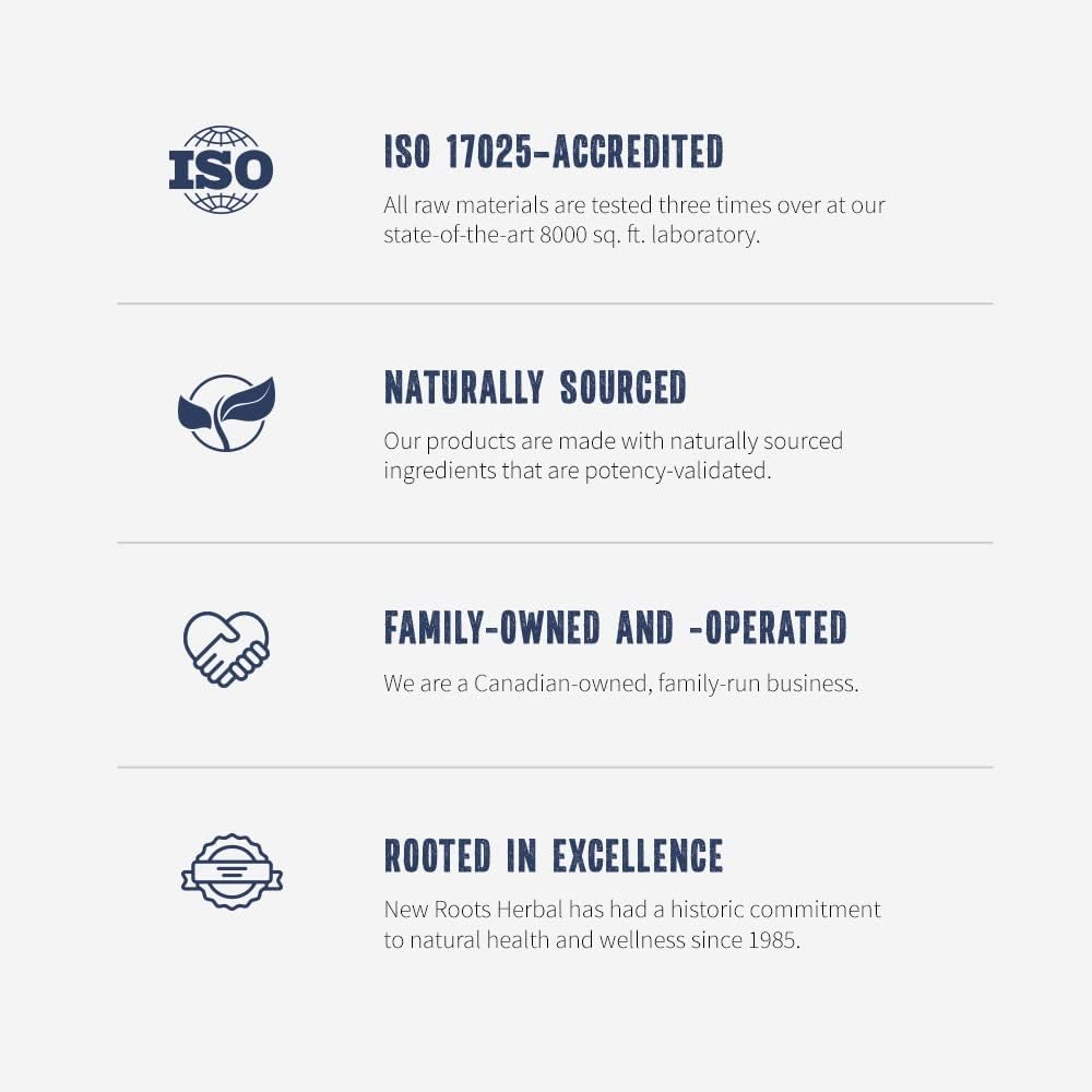 - ISO 17025 - All New Roots Herbal products have been tested in an ISO 17025 Accredited Laboratory.