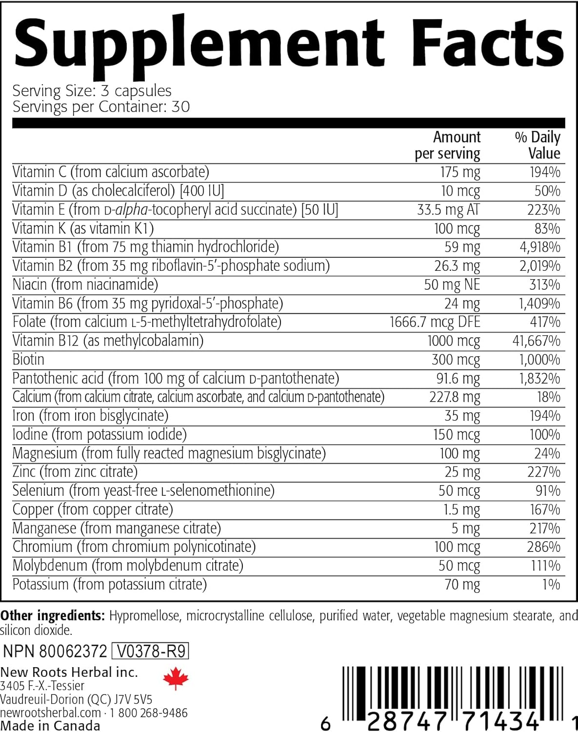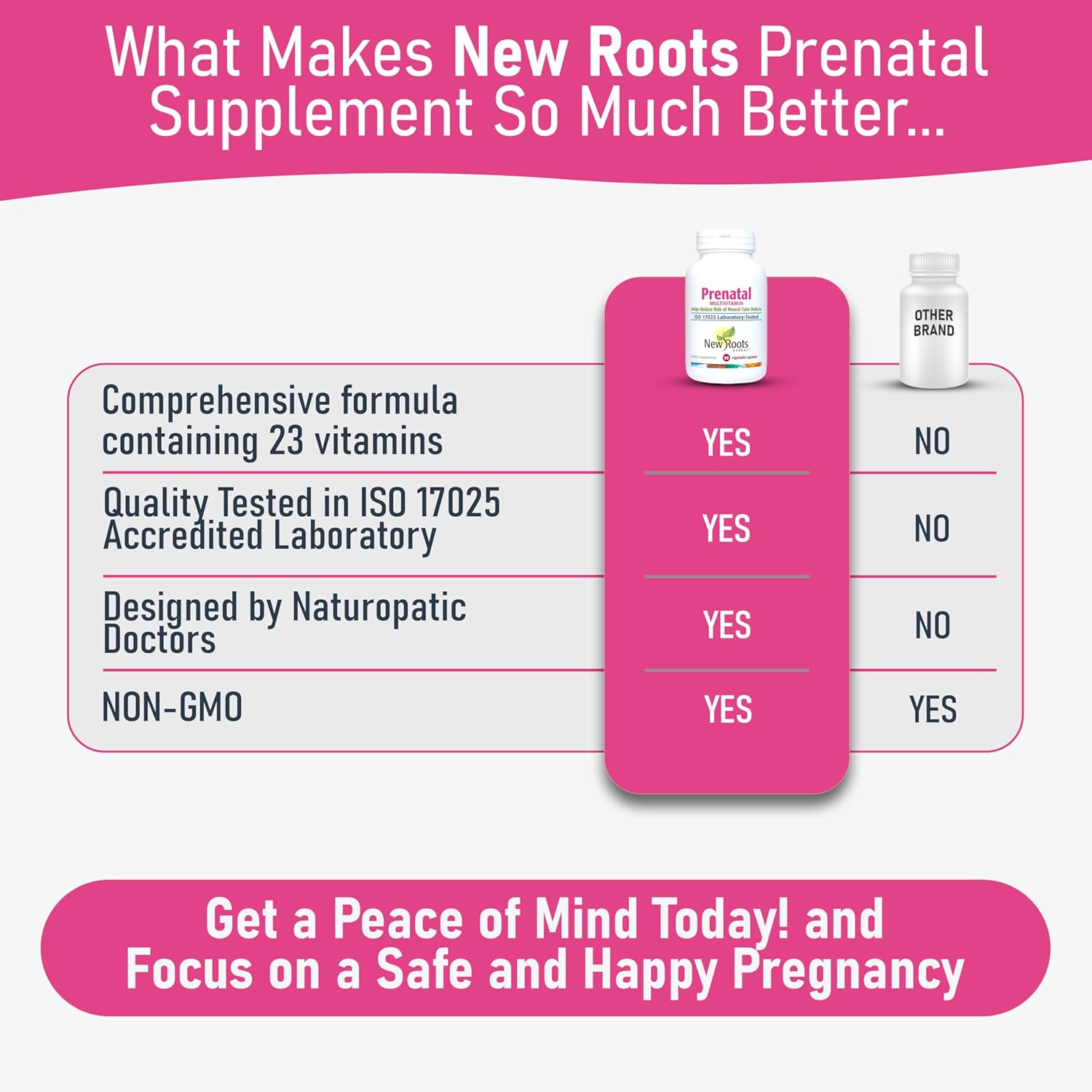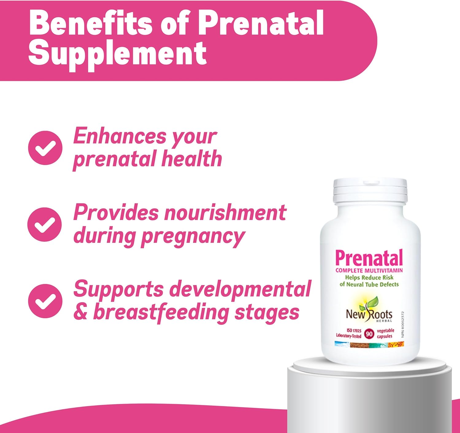 New Roots Herbal Prenatal Complete Multivitamin (90 Veg Caps) - with Biotin, Iron & Folate. Healthy baby and Pregnancy.