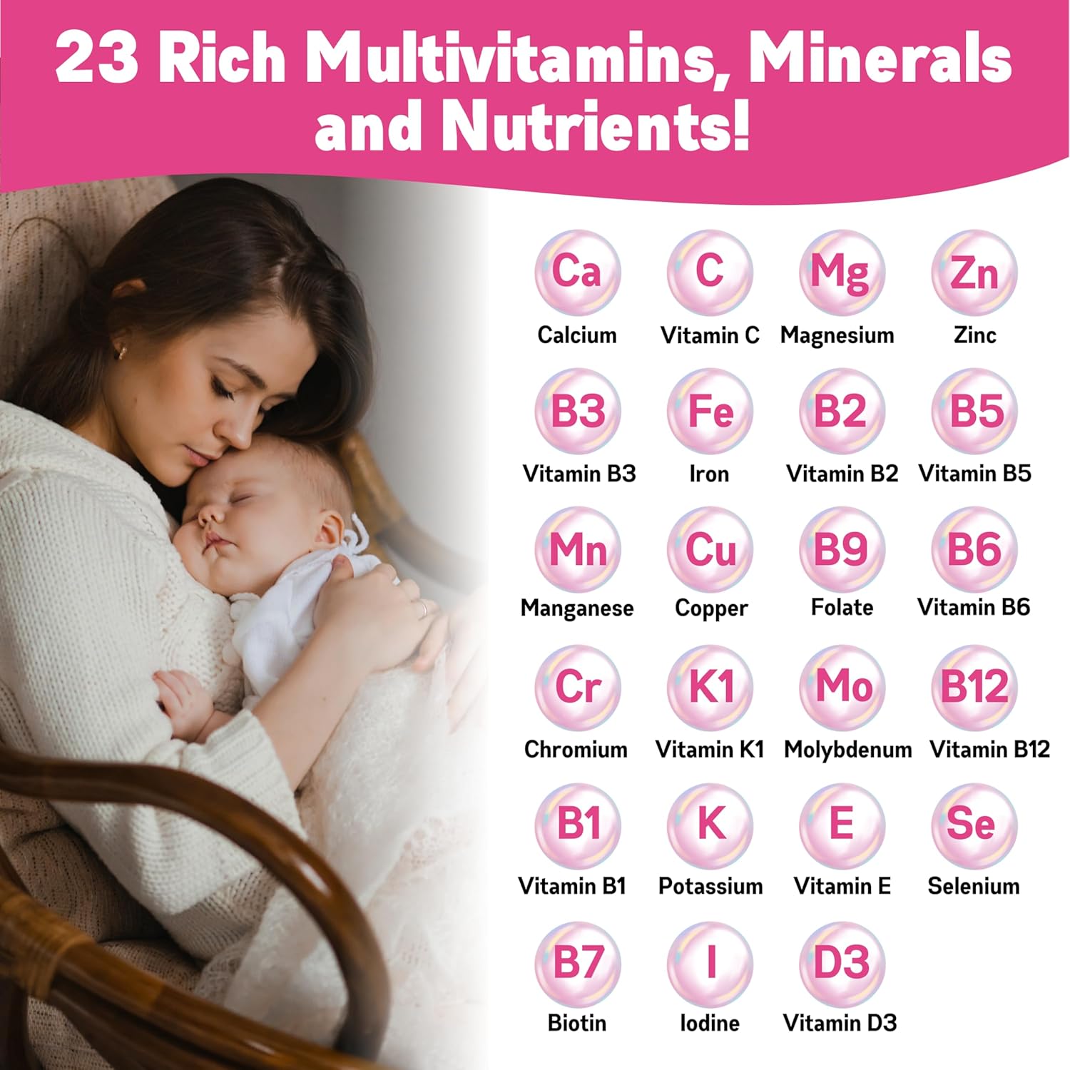 - COMPREHENSIVE FORMULA - Contains 23 vitamins, minerals, and nutrients essential for proper fetal development and maternal health before and during pregnancy, as well as while breast-feeding