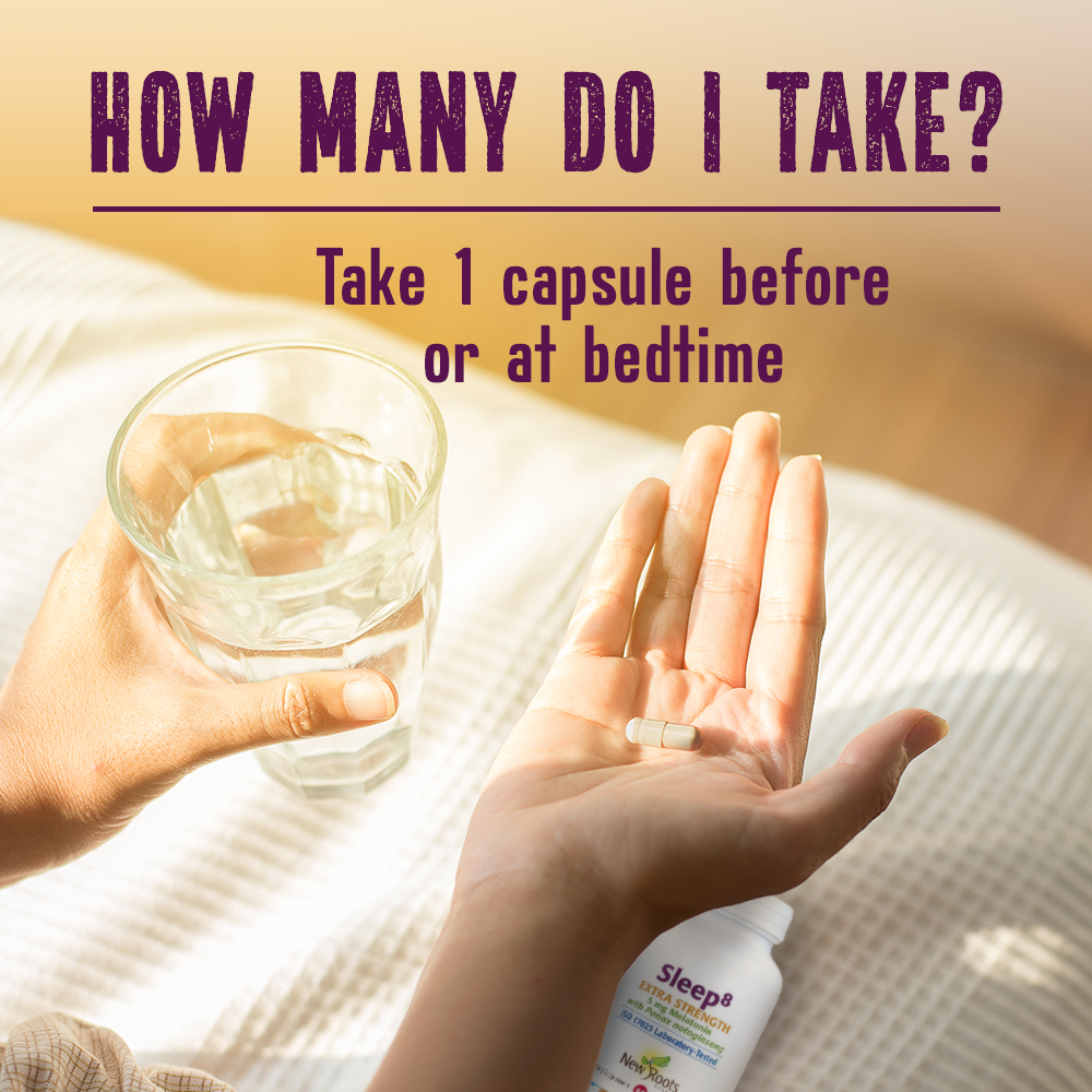 - New Roots Herbals' Sleep 8 contains 8 proven ingredients that act on your mind and body to help induce relaxation, conducive to restorative sleep. Their synergic action will allow you to get that elusive but well-deserved 8 hours of rest.